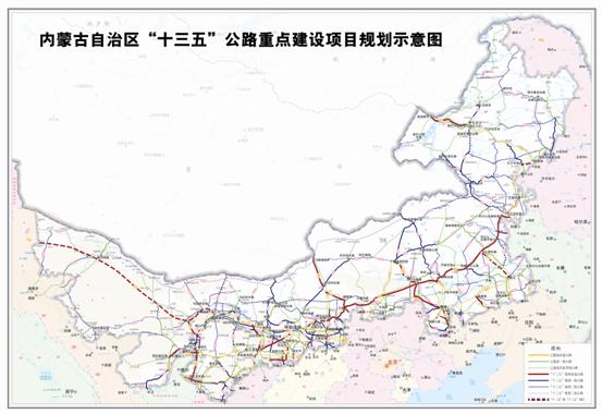 内蒙古自治区“十三五”公路重点建设项目示意图如下: