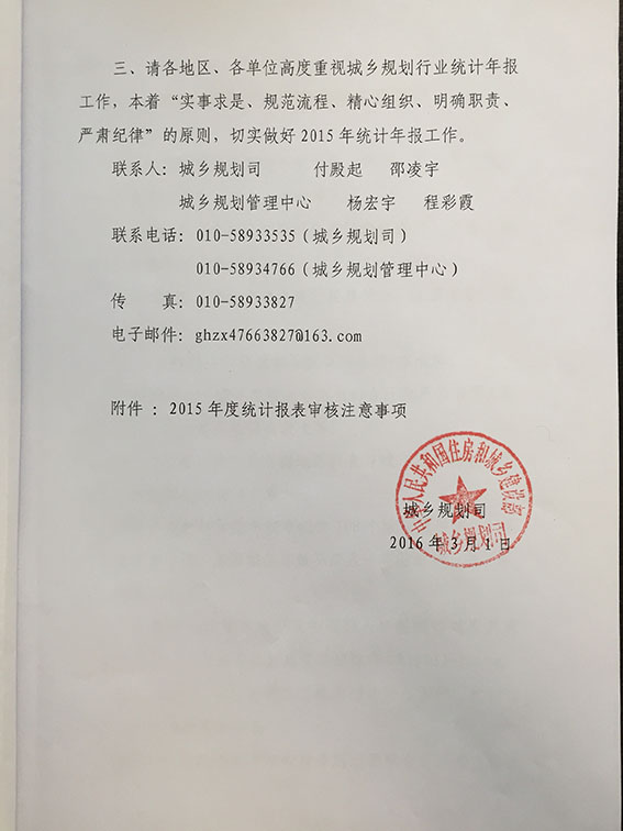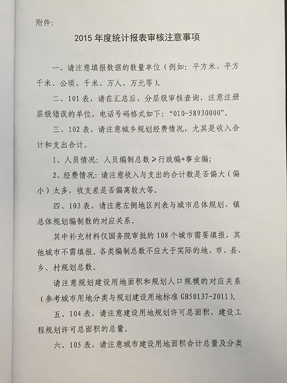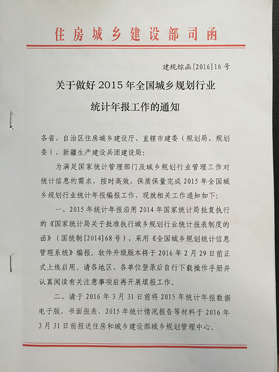 1.住房城乡建设部《关于做好2015年全国城乡规划行业统计年报工作的通知》(建规综函〔2015〕16号)》