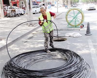 地下管线换线工人正在公园南路作业