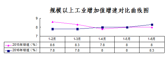 工业运行平稳。上半年,全市281户规模以上工业增加值同比增长8.3%,比一季度、1-4月份、1-5月份分别上升了0.5、0.3和0.3个百分点,高于自治区(8.1%)0.2个百分点,居全区第6位。从优势特色产业看,优势特色产业增加值同比增长8.5%,其中,农畜产品加工业同比增长10.5%;矿山及冶金工业同比增长10%;电力工业同比增长10.9%;化学工业同比下降6.6%。从产品价格看,截止7月15日,全市重点监控的30种工业品价格环比平均增长1.3%,比1-5月份上升了1.2个百分点,硫酸、黄金、一级多晶硅等产品价格同比实现两位数增长。从产品产量看,30种工业产品中有14种产品产量实现正增长,其中增长较快的主要有铅精粉同比增长55.7%、水泥增长38%、多晶硅增长30.4%、锌精粉增长29.6%。