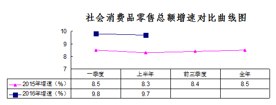 社会消费品零售总额完成113亿元,完成年度目标258亿元的43.8%,同比增长9.7%,比一季度回落了0.1个百分点,增速高于自治区(9.5%)0.2个百分点,居全区第3位;