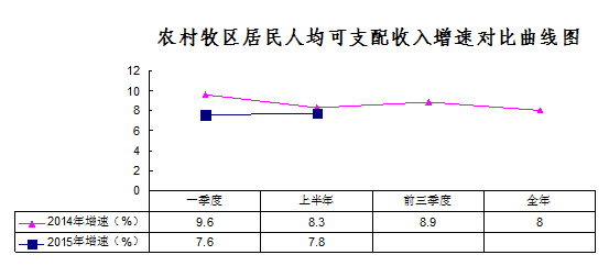 农村牧区常住居民人均可支配收入完成5794元,完成年度目标14827元的39.1%(2015年38.8%、2014年36.3%),同比增长7.8%,比一季度上升了0.2个百分点(增长因素主要是“十个全覆盖”的扩面实施,带动了农牧民实物补贴的增加,农牧民低保补助标准进一步提高,增加了转移性收入;去年葵花、黑白瓜籽等农畜产品价格较高,带动了家庭经营性收入的增加),增速低于自治区(8%)0.2个百分点,居全区第7位。