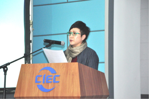 张丽副会长兼秘书长宣读施工专业委员会换届批复文件。
