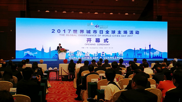 10月31日是第四届“世界城市日”。住房城乡建设部、广东省人民政府与联合国人居署共同在广州举办2017年“世界城市日”全球主场活动。住房城乡建设部部长王蒙徽、联合国副秘书长兼人居署执行主任克洛斯、广东省省长马兴瑞、上海市副市长时光辉、广州市市长温国辉和南非驻华大使多拉娜•姆西曼女士出席开幕式并致辞。