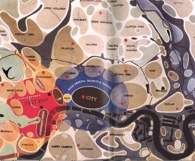 伦敦现在的城市形态是在1943年艾伯克隆比(Patrick Abbercrombie)的规划基础上,通过长期的城市规划和发展演变而来的。当时规划引导了对新住宅类型如社会住宅区和高层建筑的发展,形成今天由城市主干道互相连接的600多个独立社区组成的城市布局。